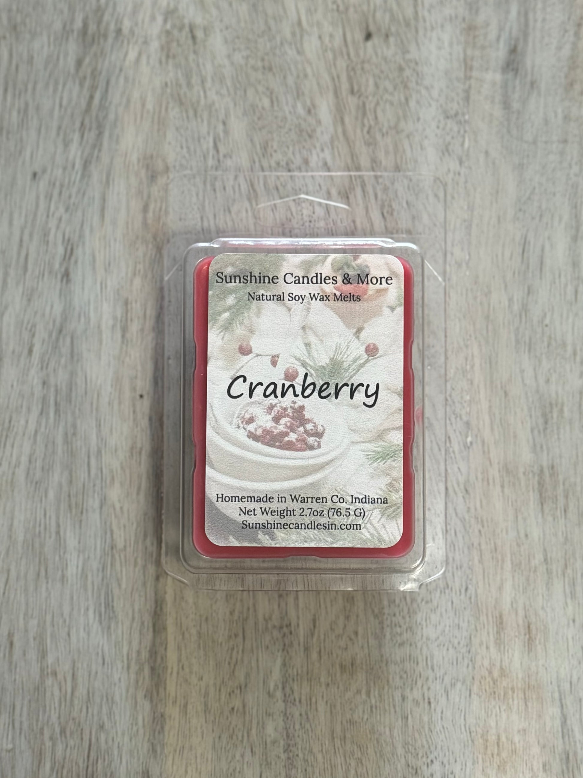 Spice up your home with our Cranberry Wax Melts. A juicy cranberry scent mixed with warm cinnamon. Perfect for fall/winter!