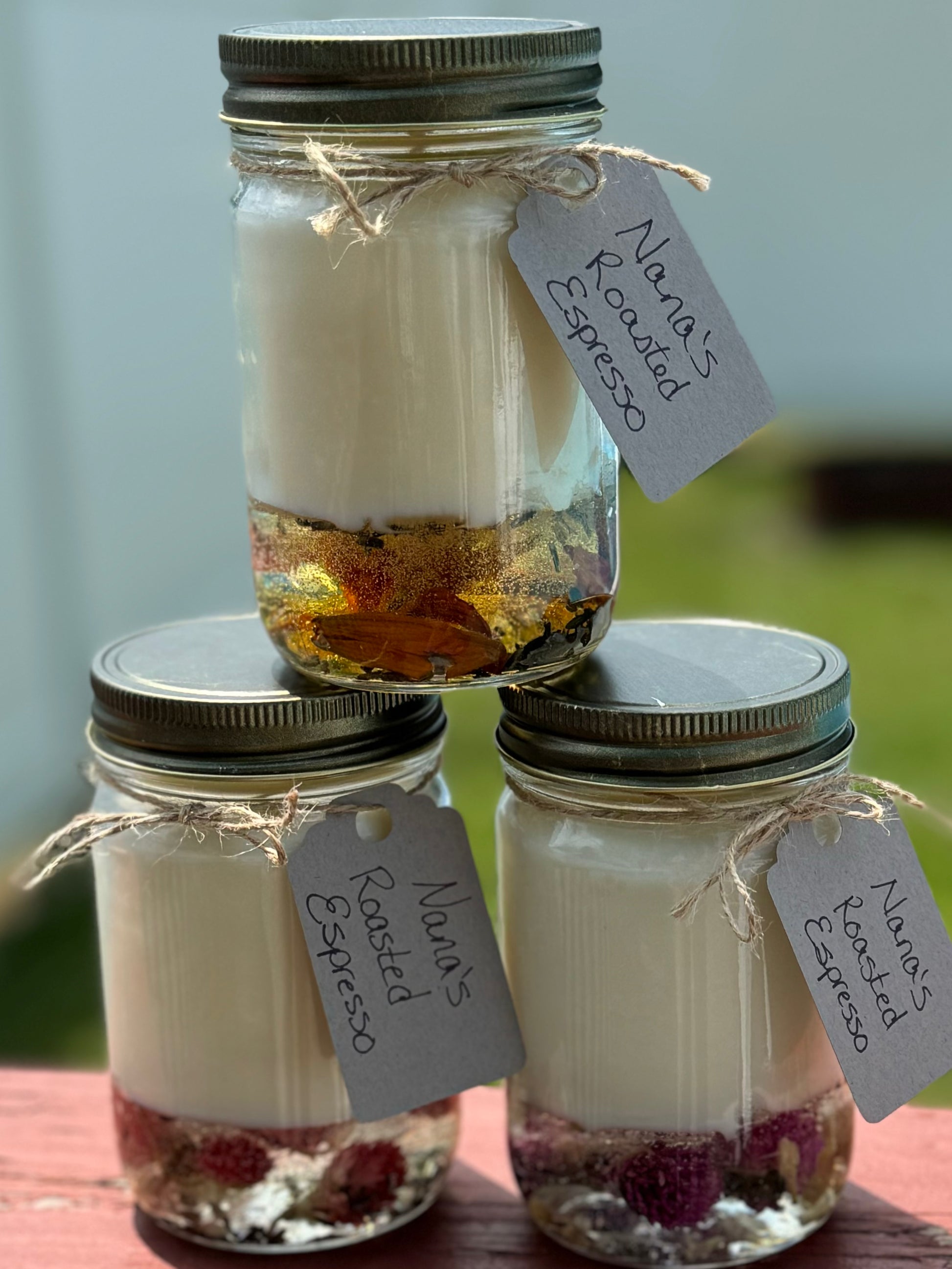 Contains natural soy wax and cotton wick for a clean and slow burn. Gel wax at bottom will not burn due to flammable objects in wax.
